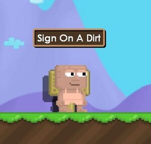 [[File:Screenshot 20230310-123621 Growtopia.jpg|left|2 Signs In A Row|200x200px]][[File:Screenshot 20230310-123529 Growtopia.jpg|center|thumb|Sign On A Dirt]] | |||