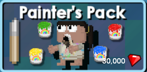 * [[ | The '''Painter's Pack''' can be purchased from the [[Growtopia Store|Store]] for 30,000 [[Gems]]. It includes a [[Paintbrush]] and 20 Paint Buckets of random colors (including [[Paint Bucket - Varnish|Varnish]]). | ||