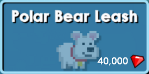 id:Polar Bear LeashThe Polar Bear Leash is an item only obtainable through the Store for 40,000 gems, or by trading with other players. It is only available during WinterFest.